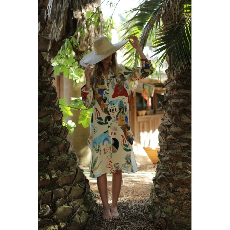 Robe chemise tunique mi- longue, manches longues, ceinture amovible.