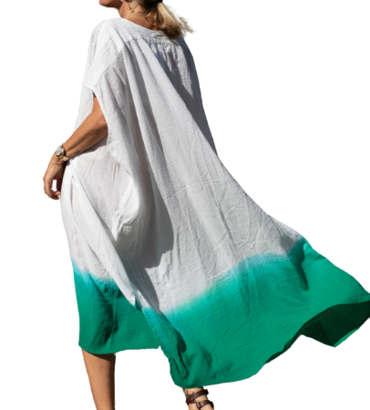 Robe en double gaze, 100 % coton, tie and dye artisanal réalisé à la main, très léger, effet froissé.