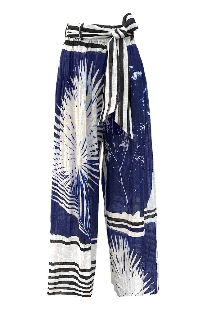 CILOS Pantalon Mes Demoiselles… Paris Pantalon en lin imprimé coloris bleu. Coupe évasée, taille élastiquée, ceinture à nouer. Composition : 100% lin. Livraison offerte en France métropolitaine dès 50€ d’achat